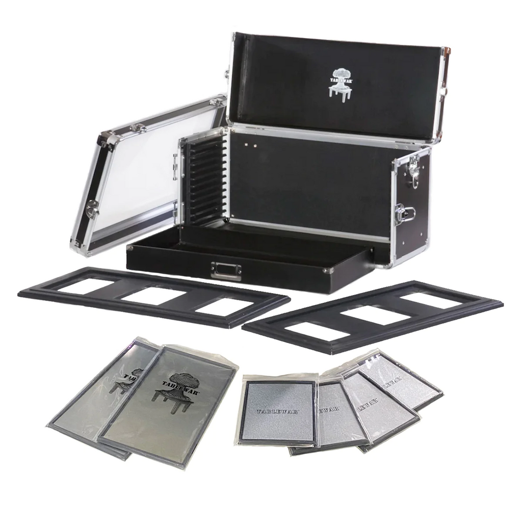 The Half-Size Display Tower Bundle comes with a Mark III Half-size Tower Case + 2 Double-wide Bottom Base Trays + 4 Bottom Base Trays. Enough trays to fill the entire case and then some!