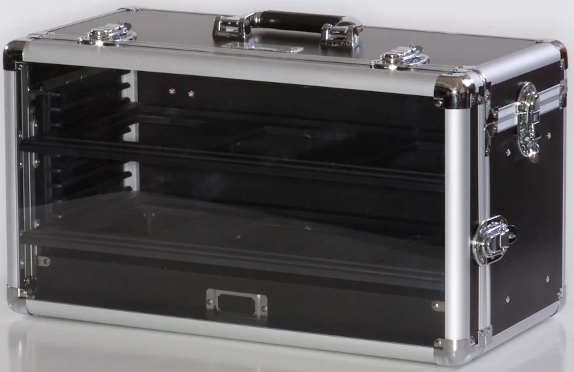 This product is designed to work best with our Display Boards (2 included; more may be purchased separately) and Unit Trays. The front of the case has an acrylic face to allow visibility into the contents of the case while the case is closed. The acrylic face is removable for easy access to the case when opened. The top lid of the case also opens to provide even greater access to the contents when the case is opened. The drawer of the case may be removed to allow greater customization and arrangements of the contents.