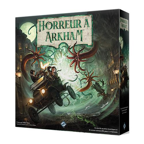 Horreur à Arkham est un jeu de plateau alliant action et horreur à sensation. Il se déroule dans la ville fictive d’Arkham, au Massachusetts, rendue célèbre par H.P. Lovecraft et ses écrits concernant le Mythe de Cthulhu. Les joueurs devront rassembler des indices, des alliés et des outils afin de lutter contre les créatures obscures venant d’un autre monde. Jeu de 2 à 3 heures De 1 à 6 joueur(s) La ville d’Arkham vit depuis trop longtemps sur sa paisible île d’ignorance, au cœur des noirs océans de l’infini. Seule une poignée d’investigateurs malchanceux ose plonger dans cet abîme pour combattre les maux antédiluviens qui menacent la réalité depuis chaque recoin de cette bourgade de Nouvelle-Angleterre. Horreur à Arkham est un jeu coopératif alliant mystère et terreur pour un à six joueurs