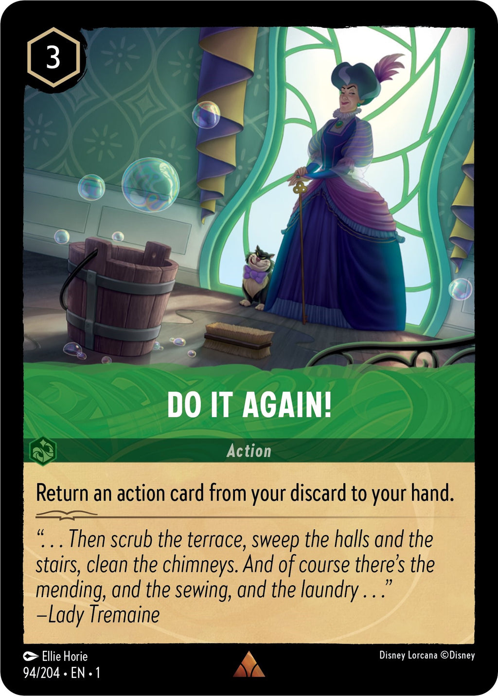 Flavor Text: "...Then scrub the terrace, sweep the halls and the stairs, clean the chimneys. And of course there's the mending, and the sewing, and the laundry..." —Lady Tremaine