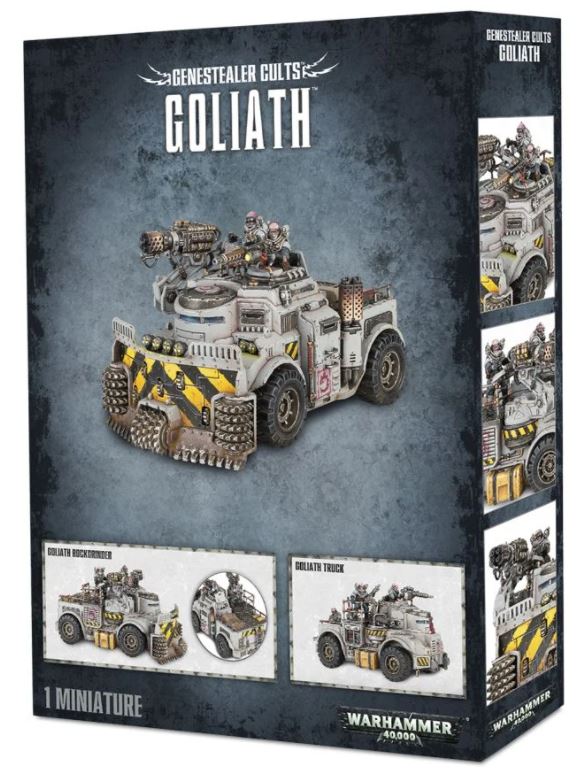 Infinitely adaptable, hard-wearing and rugged, the Goliath Truck is a mainstay of the Genestealer Cults. Fast and manoeuvrable, it bounces around the battlefield laying down walls of gunfire, heavy stubbers and autocannons ablaze. Once dedicated to the shadows, the crew manning the Goliath – proudly emblazoned with insignia of the Cult – now do everything in their power to get as close to the enemy, screaming rapidly across even the most hostile terrain to slam open their cargo compartment and disgorge broods of up to 10 scuttling Hybrids.