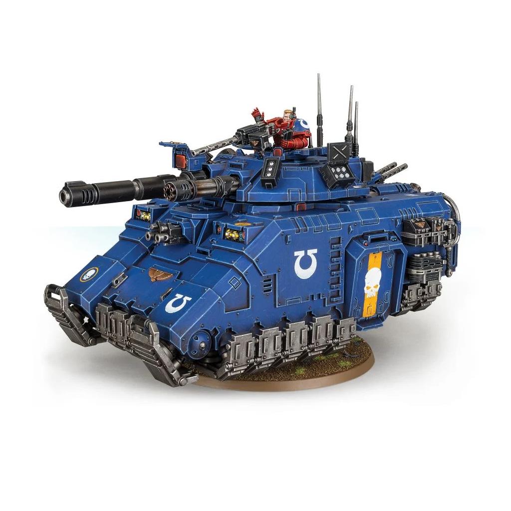 The Repulsor Executioner is the most heavily armed battle tank available to the Adeptus Astartes, with a choice of murderously powerful, primary turret-mounted weapon – a macro plasma incinerator or heavy laser destructor – supported by a coaxial heavy onslaught gatling cannon. Add to that two krakstorm grenade launchers, two storm bolters, a twin Icarus ironhail heavy stubber, an ironhail heavy stubber as well as a hull-mounted twin heavy bolter and your Repulsor Executioner certainly won’t be lacking for firepower! You can supplement this offensive capability with a set of defensive auto launchers and even an Icarus rocket pod for further aerial protection.